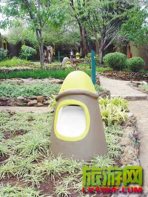 為了美化市容,肯尼亞人在繼承傳統(tǒng)民宅風(fēng)格的基礎(chǔ)上,設(shè)計了不少類似樹樁、竹竿等的仿生住宅,讓人有回歸自然之感。 每當(dāng)夜幕降臨,形似蘑菇的路邊裝飾就會發(fā)出柔和的光束,原來它們是經(jīng)過精心設(shè)計的路燈。