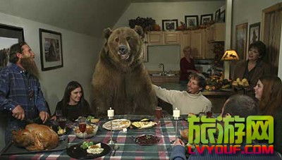 旅游官 美國大灰熊與人同桌共享感恩節(jié)大餐 attach_img