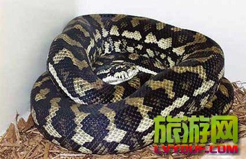 叢林地毯蟒   美國圣路易斯市“世界水族館”得到一只世界罕見的雙頭地毯蟒,并計(jì)劃向公眾征集蟒蛇姓名。   美國密蘇里州KCTV5電視臺12日公布的畫面顯示,這支雙頭地毯蟒背部呈黑色,全身有褐色花紋,蛇 ...