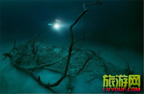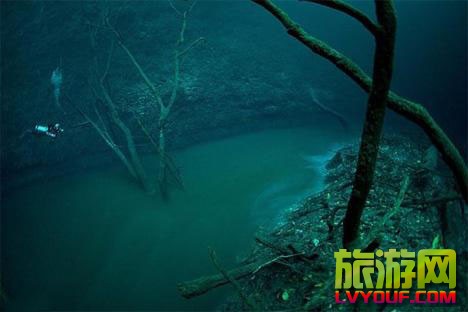 地球上一些令人最難以置信的場所通常都隱藏于人們的視野之外。墨西哥尤加坦半島上的安吉利塔沼穴就是這樣一個匪疑所思之處。薄薄一層硫化氫形成的“河流”穿過沼穴,就好像是一條流動于水下30米的水中河。專業(yè)攝 ...