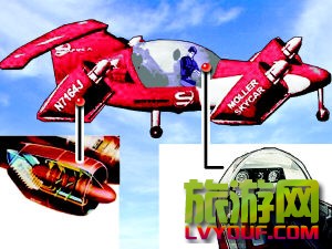 空中汽車示意圖(左下右下分別是發(fā)動機剖面圖和駕駛室內部結構)時報圖形 2001年,美國教授莫勒駕駛他潛心研究的MX-400空中汽車輕松自如地奔馳著,頃刻間汽車飛上了藍天。他的這一創(chuàng)舉被專家們譽為“汽車演變的里 ...