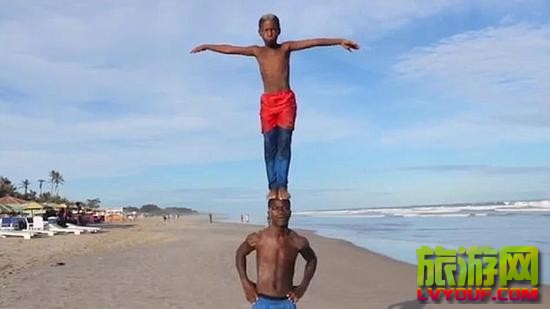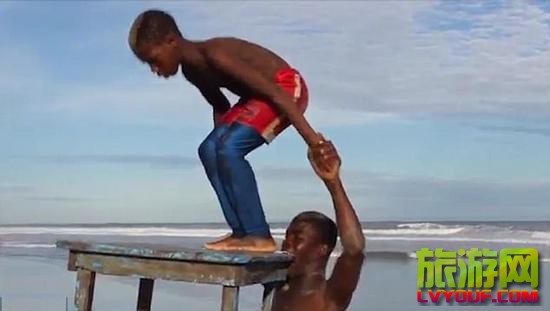 據(jù)英國《每日郵報(bào)》報(bào)道,非洲加納(Ghana)的兩個(gè)小伙子在首都阿克拉附近的拉巴迪海灘上表演了一系列驚人的雜技把戲。   年齡較長(zhǎng)的男孩用牙咬住桌子的一角,然后用力舉到了空中,接著另一個(gè)小男孩先是爬到 ...