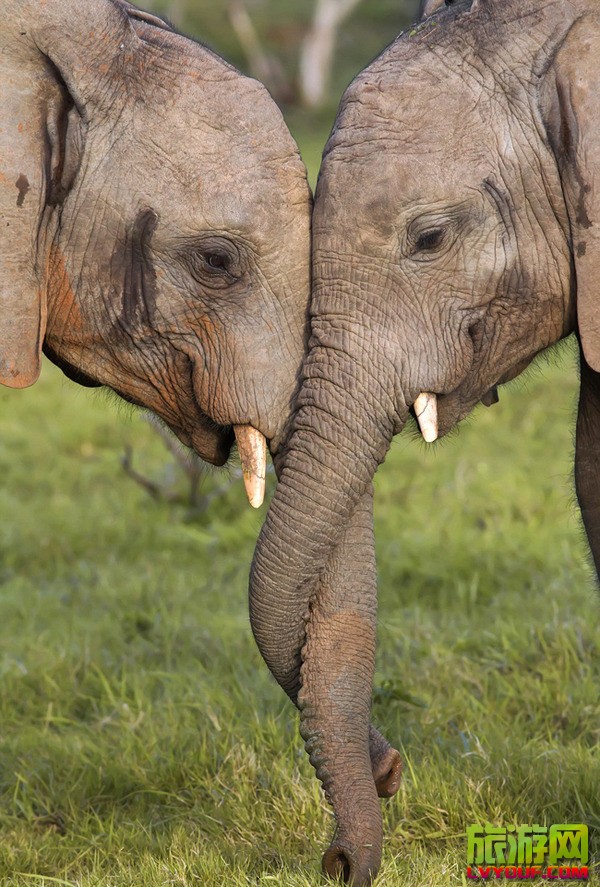 從某個(gè)角度看起來(lái),兩頭非洲象似乎在“親吻”對(duì)方   據(jù)《每日郵報(bào)》報(bào)道,37歲攝影師雅克·馬蒂桑日前在南非卡里埃加野生動(dòng)物保護(hù)區(qū)(Kariega Game Reserve)內(nèi)拍攝到溫馨一幕:兩頭非洲大象鼻勾 ...
