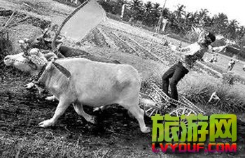 一個(gè)小伙子正努力駕駛他的牛車 2006年9月24日,印尼巴厘島,當(dāng)?shù)匾荒暌欢鹊呐\嚧筚愓缁鹑巛边M(jìn)行中,共有308頭水牛參加了本次比賽。牛車大賽是當(dāng)?shù)氐囊豁?xiàng)有趣的賽事,最早于1960年舉辦。