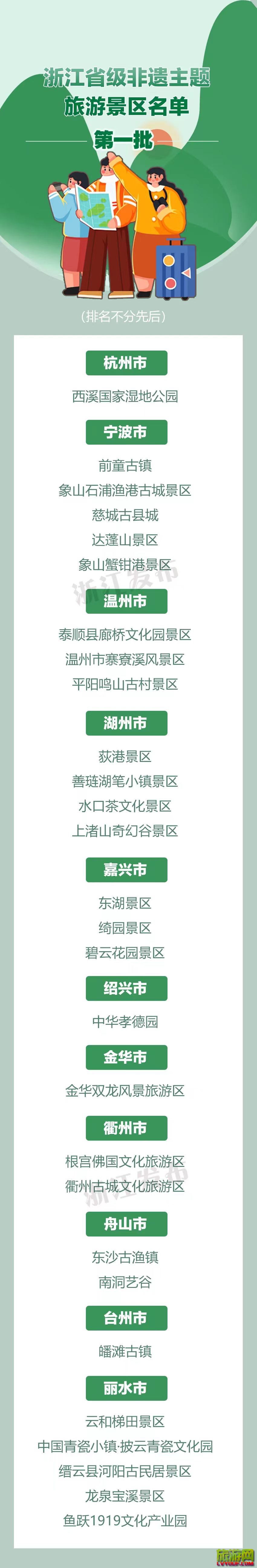 近日獲悉,杭州西溪國(guó)家濕地公園等28家景區(qū),被公布為浙江省第一批非遺主題旅游景區(qū)。寧波市、麗水市各有5個(gè),湖州市有4個(gè),溫州市、嘉興市均有3個(gè),衢州市、舟山市分別有2個(gè),杭州市、紹興市、金華市、臺(tái)州市都有1個(gè)。 杭州西溪國(guó)家濕地公園為國(guó)際重要濕地、國(guó)家5A級(jí)景區(qū),蘊(yùn)含“梵、隱、閑、俗、野”五大主題文化元素,集城市濕地、農(nóng)耕濕地和文化濕地于一體。非遺資源極為豐富,擁有蔣村龍舟勝會(huì)、五常龍舟勝會(huì)等多項(xiàng)國(guó)家級(jí)非遺,以及西湖花朝節(jié)、西溪船拳等眾多省、市、區(qū)級(jí)非遺。 寧波象山石浦漁港古城景區(qū)里,石浦漁港古城依山而建,城內(nèi)有歷史文化場(chǎng)館、非遺特色商鋪、研學(xué)互動(dòng)課堂等,還有巡檢司舊址、許家宅院等十余處文保點(diǎn),街巷蜿蜒,房屋錯(cuò)落,形成“城在山上,山在城中,城港相連,城海相望”的獨(dú)特格局。設(shè)有非遺生活館,展陳盤扣、竹雕、彩漆等10余個(gè)非遺項(xiàng)目,40余件傳承人代表作品。 溫州市泰順縣廊橋文化園景區(qū)位于浙南閩東首個(gè)國(guó)家級(jí)旅游度假區(qū)——廊氡國(guó)家級(jí)旅游度假區(qū)的核心板塊,園區(qū)內(nèi)“北澗橋”“溪東橋”被譽(yù)為世界最美廊橋。在打造廊橋旅游品牌形象的同時(shí),廊橋文化園對(duì)非物質(zhì)文化傳承十分重視,定期開展非遺木偶戲表演、斗牛表演賽等特色旅游演藝項(xiàng)目,推出“廊橋市集”“廊氡尋年俗 新春游園會(huì)”等系列文旅活動(dòng)。 湖州市南潯區(qū)荻港景區(qū)位于和孚鎮(zhèn),是典型的浙北水鄉(xiāng)歷史古村,因“倚港結(jié)村落,荻葦滿溪生”而得名,自南宋建村歷經(jīng)千年,如今依舊保持小橋流水,白墻黛瓦的水鄉(xiāng)風(fēng)貌,堪稱江南水鄉(xiāng)古村落中的“活化石”。荻港景區(qū)非遺項(xiàng)目?jī)?nèi)容豐富,其中自主申報(bào)的非遺有11項(xiàng)(省級(jí)非遺項(xiàng)目3項(xiàng),市級(jí)非遺項(xiàng)目3項(xiàng),區(qū)級(jí)非遺項(xiàng)目5項(xiàng)),有荻港漁莊、美食街、扎染工作室等場(chǎng)所作為傳承載體。此外,依托非遺里的中國(guó)陳列館等重磅級(jí)資源,展陳全國(guó)各地11個(gè)省份非遺項(xiàng)目78項(xiàng),共計(jì)160多件非遺作品。 位于嘉興市海鹽縣城核心區(qū)域的綺園景區(qū),為國(guó)家4A級(jí)旅游景區(qū),包括綺園、張樂平紀(jì)念館、張?jiān)獫?jì)紀(jì)念館等景點(diǎn)。景區(qū)依托非遺館收錄了海鹽縣各鎮(zhèn)(街道)的非物質(zhì)文化遺產(chǎn),參觀者可一站式領(lǐng)略海鹽文化瑰寶。在這里,你可以看到省級(jí)非遺項(xiàng)目海鹽腔的表演,也可以在非遺館體驗(yàn)海鹽滾燈、古法和香制作技藝等多個(gè)非遺項(xiàng)目。 坐落于紹興上虞城區(qū)西南鳳凰山麓的中華孝德園是曹娥江省級(jí)風(fēng)景名勝區(qū)的核心區(qū)塊。景區(qū)主要包括大舜廟、虞舜宗祠、般若寺、中國(guó)孝德館等建筑群,以“孝感動(dòng)天”的遠(yuǎn)古圣君虞舜和“投江救父”的東漢孝女曹娥為依托,集中展現(xiàn)上虞悠久的人文歷史,傳承和弘揚(yáng)千百年來激勵(lì)著中華民族不斷前進(jìn)的孝德精神。 金華雙龍風(fēng)景旅游區(qū)是一處融自然山水、溶洞群景觀等于一體的景區(qū)。景區(qū)內(nèi)非物質(zhì)文化遺產(chǎn)氛圍濃厚,黃大仙(黃初平)傳說是國(guó)家級(jí)非遺,婺州舉巖茶制作技藝不僅是國(guó)家級(jí)非遺,還作為“中國(guó)傳統(tǒng)制茶技藝及其相關(guān)習(xí)俗”項(xiàng)目重要組成部分,入選聯(lián)合國(guó)教科文組織新一批人類非物質(zhì)文化遺產(chǎn)代表作名錄。景區(qū)內(nèi)現(xiàn)建設(shè)有金華山非遺館,用于景區(qū)周邊各類非遺傳播和操作體驗(yàn),同時(shí)在游客中心建設(shè)有數(shù)字博物館,對(duì)景區(qū)非遺項(xiàng)目進(jìn)行數(shù)字化展示。 衢州古城文化旅游區(qū),包含儒學(xué)文化研習(xí)區(qū)、宋韻古城體驗(yàn)區(qū)、六藝生態(tài)游樂區(qū)和鹿鳴創(chuàng)意休閑區(qū)四大板塊。旅游區(qū)有著衢窯研究院的國(guó)宴青瓷制作技藝、衢州邵永豐麻餅制作技藝、常山黃師傅捏糖人技藝以及龍游酥餅制作技藝等非遺技藝。水亭門歷史文化街區(qū)柴家巷非遺區(qū)塊的改造建設(shè),以“獨(dú)具匠心、非同遺般”為主題,成功引入了衢州青瓷、木雕竹刻、江山米糕等非遺手工技藝傳承體驗(yàn)項(xiàng)目。 舟山市岱山縣東沙古漁鎮(zhèn)是中國(guó)歷史文化名鎮(zhèn),也是舟山歷史上著名的漁港,國(guó)家3A級(jí)旅游景區(qū),有著“中國(guó)唯一的海島古漁鎮(zhèn)”“大黃魚之鄉(xiāng)”的美譽(yù)。東沙古漁鎮(zhèn)現(xiàn)有11處文物保護(hù)單位,擁有漁民謝洋節(jié)、舟山漁民號(hào)子等58項(xiàng)非物質(zhì)文化遺產(chǎn),其中國(guó)家級(jí)1項(xiàng)、省級(jí)4項(xiàng)、市級(jí)13項(xiàng)、縣級(jí)40項(xiàng)。多年來小鎮(zhèn)著力古建筑的修復(fù)保護(hù),打造特色小巷弄堂風(fēng)景線,形成由鹽雕、貝雕、魚骨塑畫、船模、木偶戲、舟山鑼鼓、走書、舟山漁民畫、魚繩結(jié)等11家非遺店鋪和非遺傳習(xí)所、曲藝書場(chǎng)組成的非遺特色街區(qū)